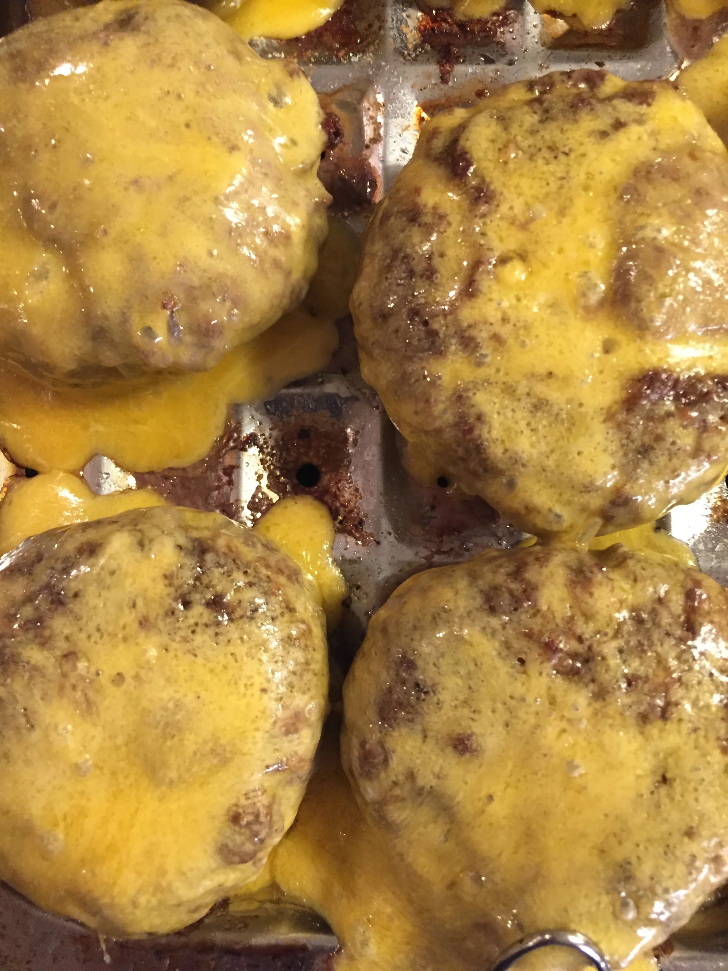 Broil on high for five minutes, or until burgers have browned. Flip burgers over and broil on high for an additional 4 minutes. Top with cheese slices and broil for one additional minute- making sure to keep a close eye on the oven - cheese can go from perfectly melty to burnt in a matter of seconds when it's under the broiler.