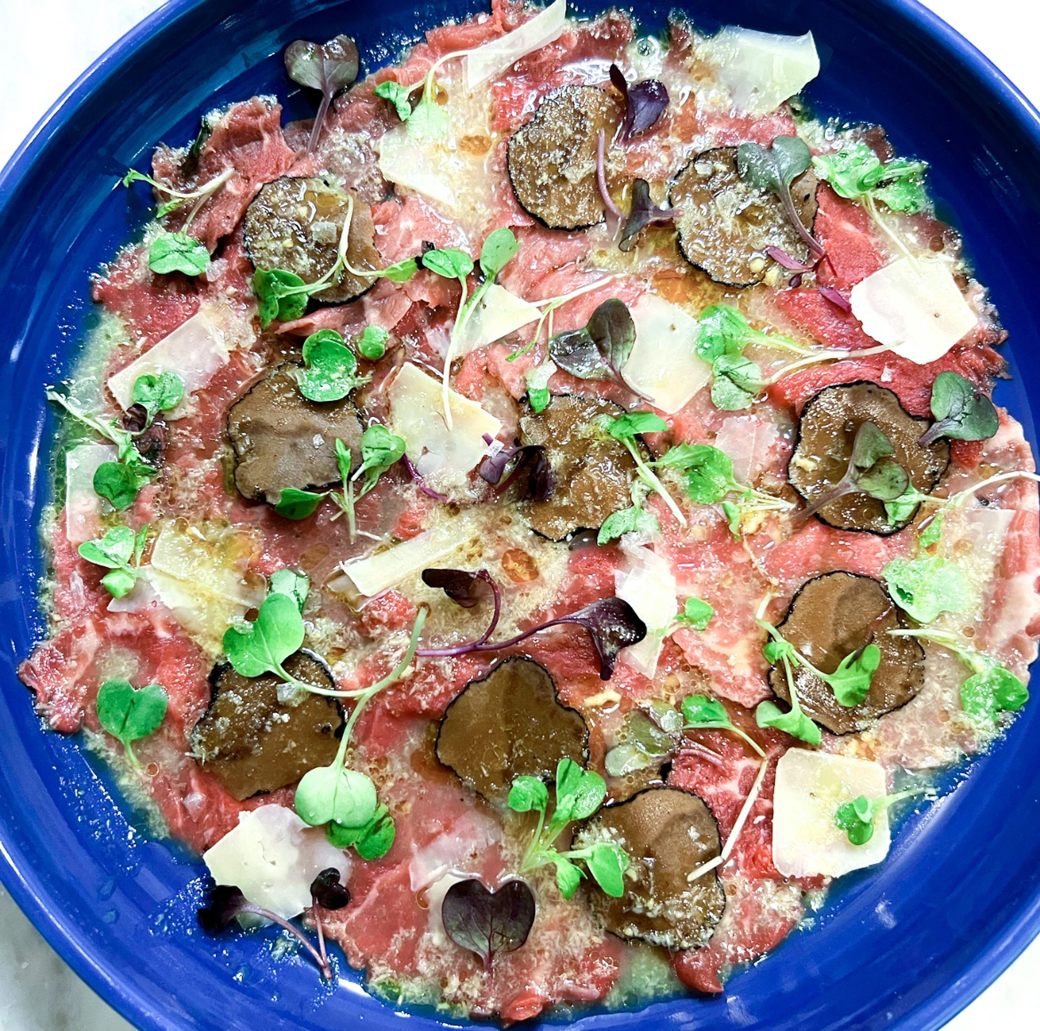 Whenever I get good quality filet from the butcher, you know I’m gonna make a tartare or carpaccio… and its truffle season right now, so that’s what I’m all about right now.
