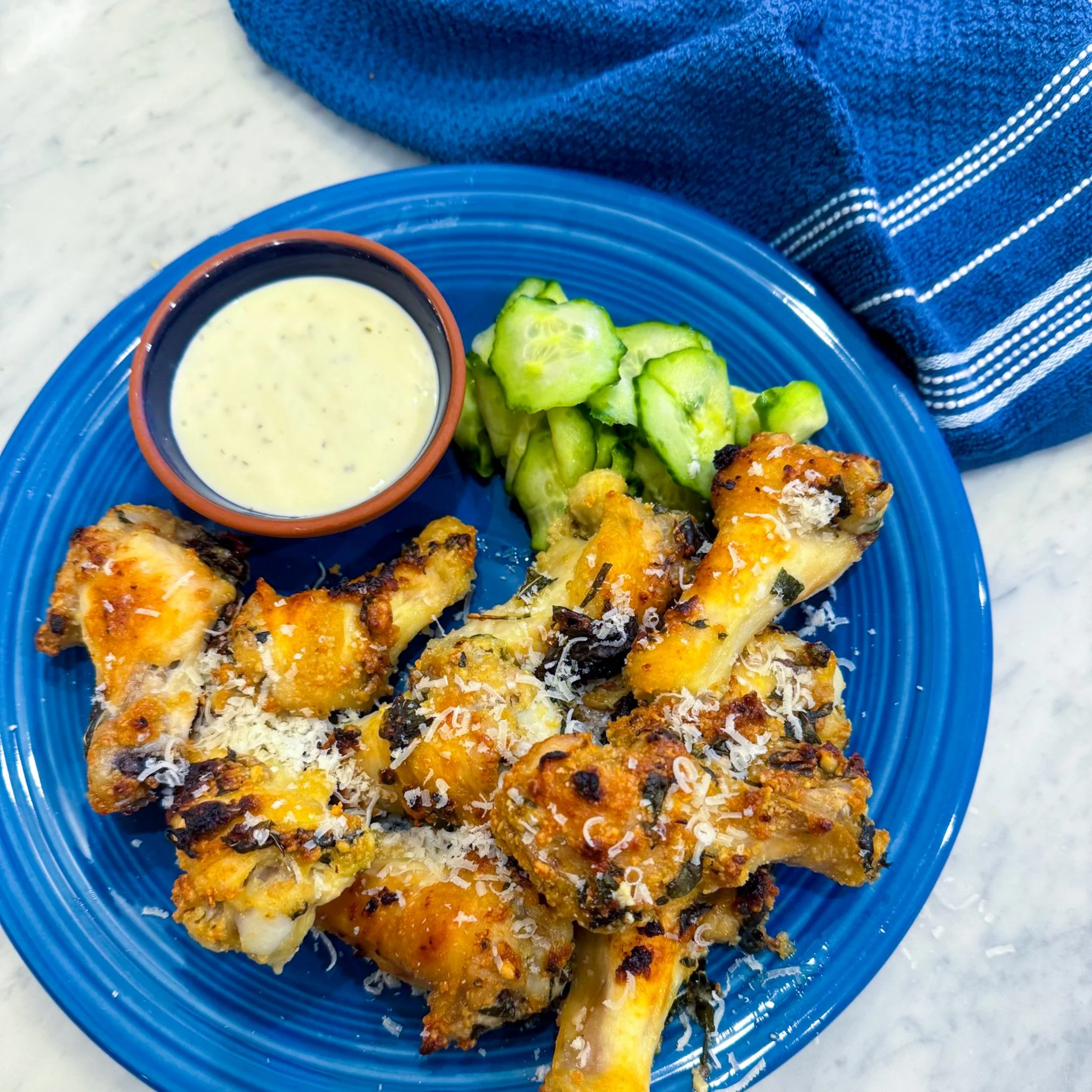 What do you get when you take the ingredients for a traditional pesto, grate them, and then toss together with chicken drumettes.