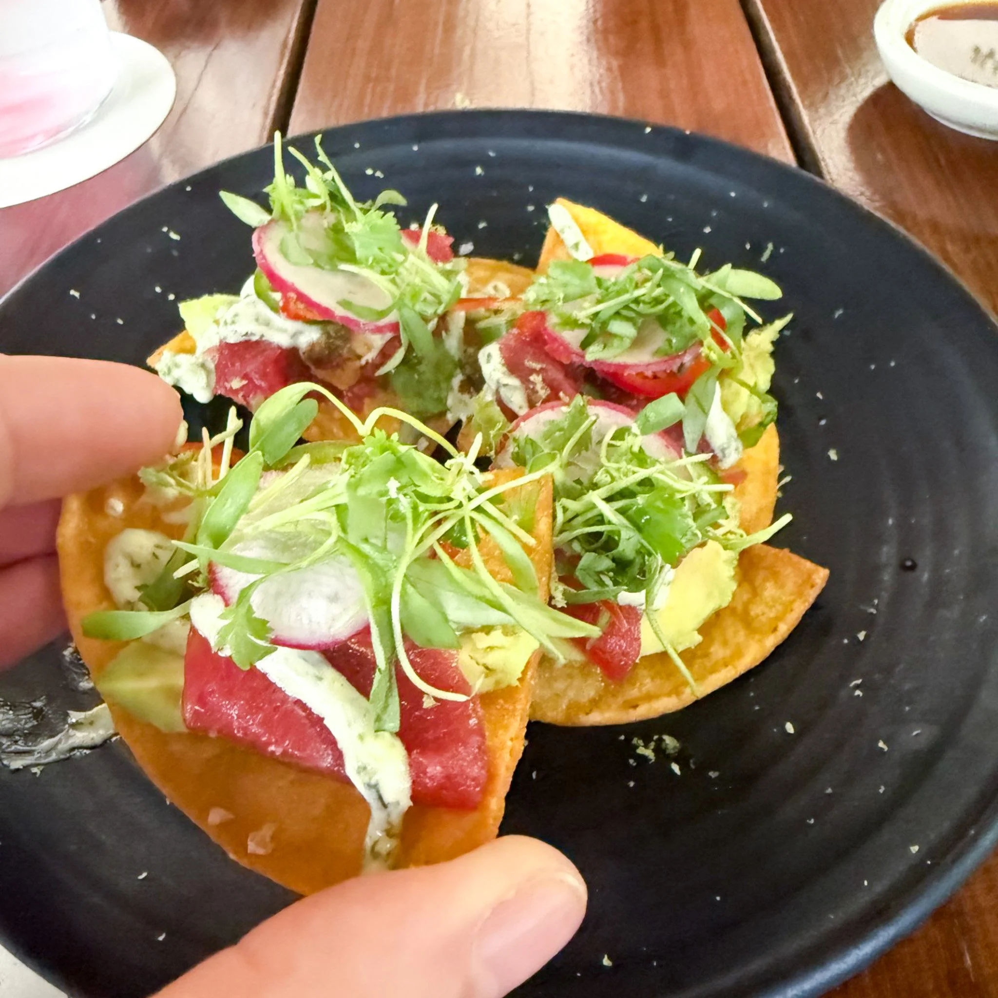 If you’re asking me what to order, that’s unique and specialized to himitsu… i’m recommending the tostadas. First of all you get to pick your fish - and you can pick two of your choice. The tostada is broken up into four chips - so you can get two of each fish, if you so choose.