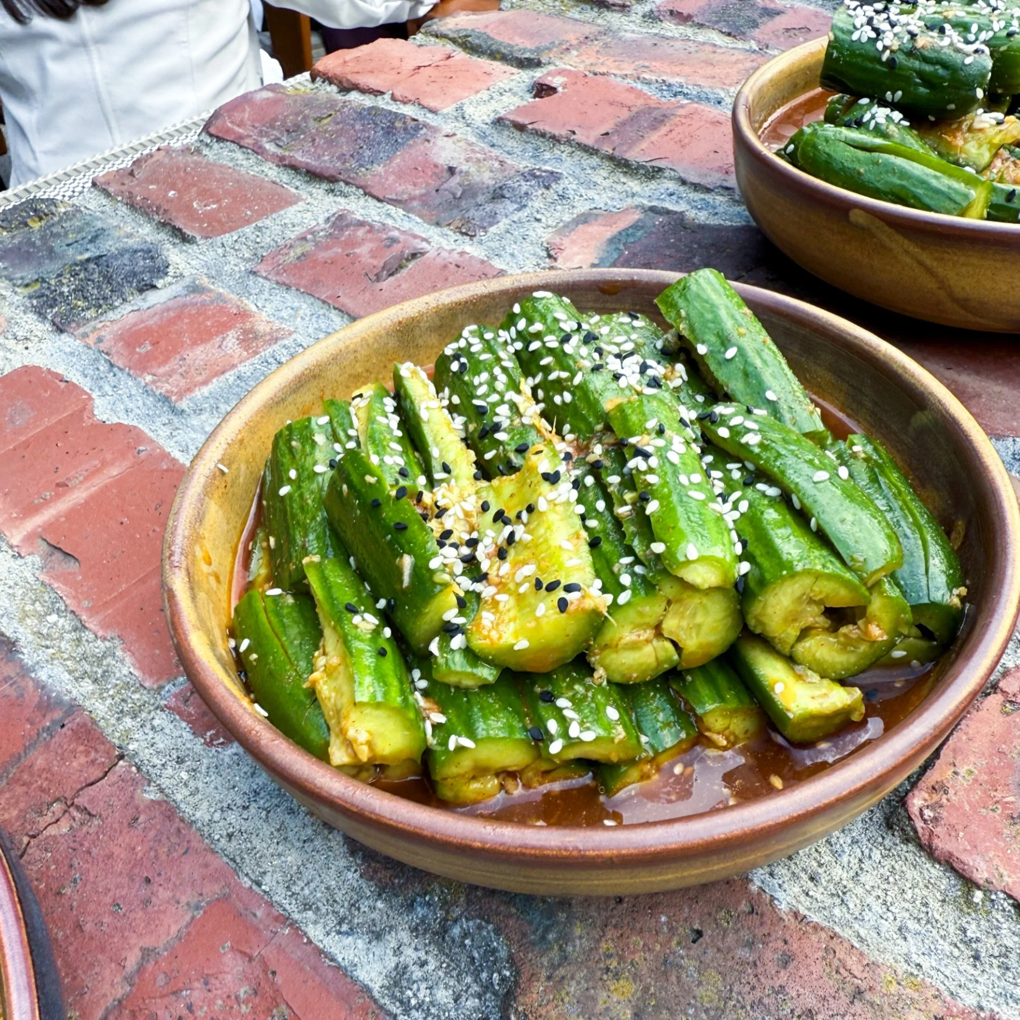 Cucumber salad is certainly having it’s moment right now… smashed, pickled, thinly sliced and tossed in a food safe container, and all of the the above.
