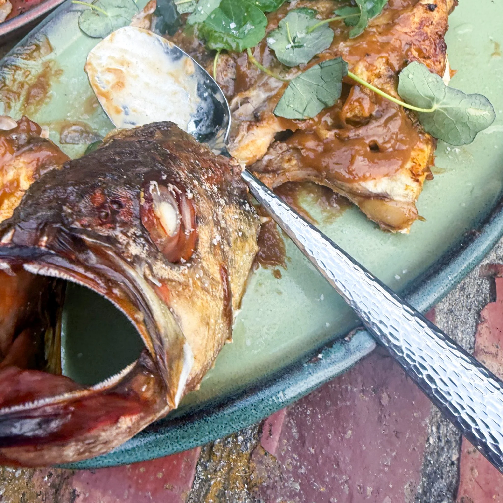 Definitely sweet and sour here. Fish was perfectly cooked and flakey. Rockfish is not my fav… but beggars, choosers, and y’all know I’m choosing fish.