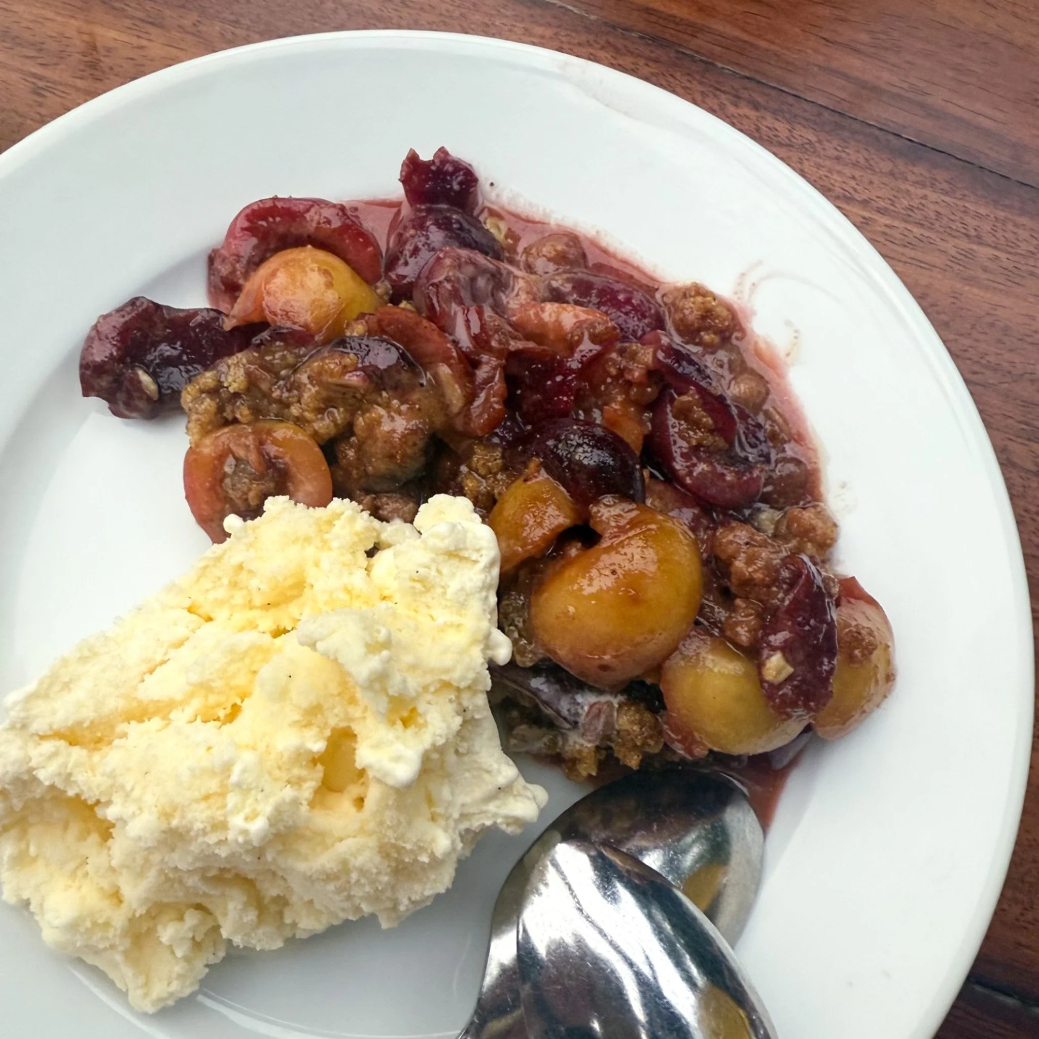 I love, love crumble. And the assorted cherries utilized here created such a great difference of tart and sweet. Crumble topping was fantastic, and who doesn’t need to have ice cream with their crumble? It’s a must. And the perfect way to end our meal.