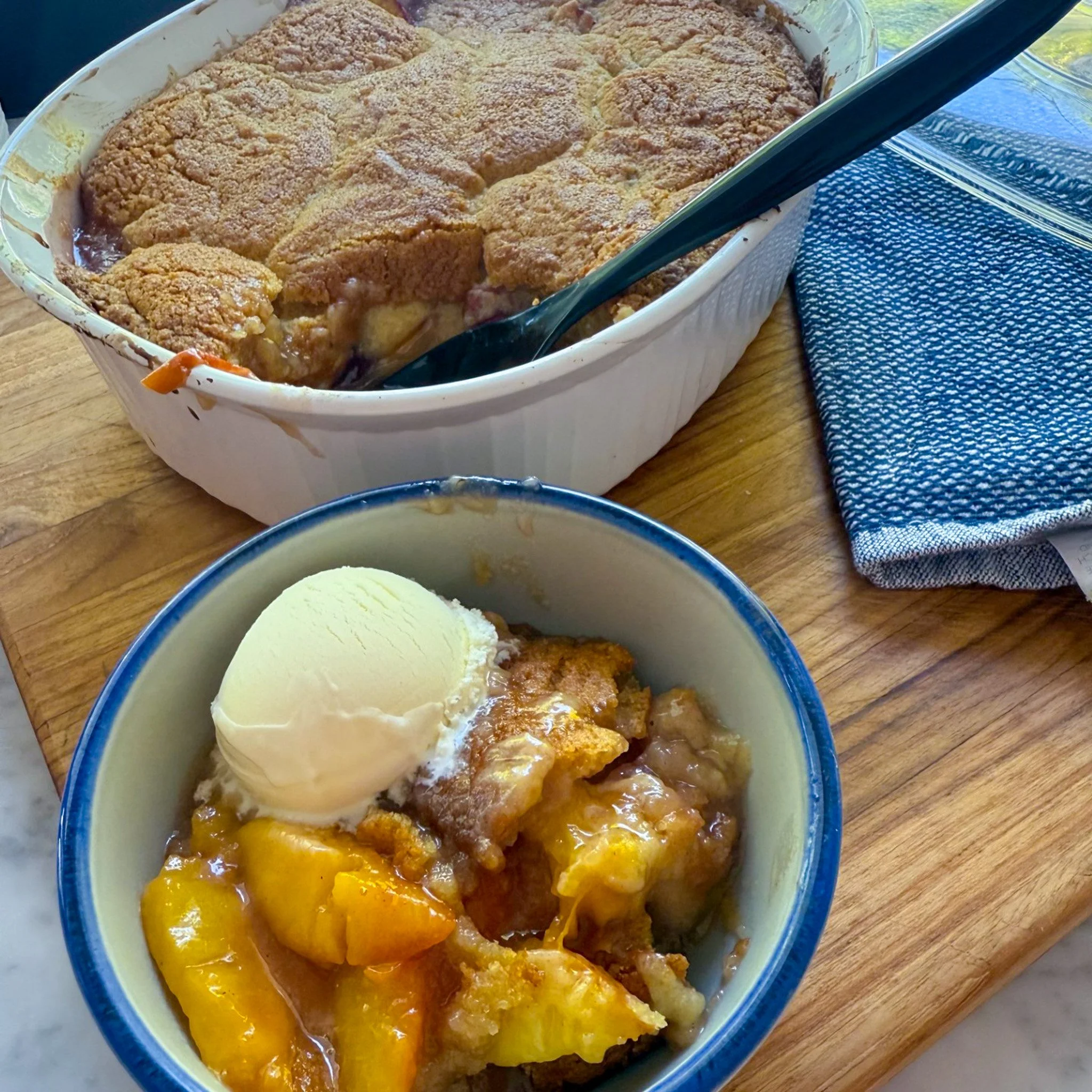 And this peach cobbler? When I tell you this is the dessert you want to take to your next bbq, potluck, or on a picnic? Trust me. It’s the truth.