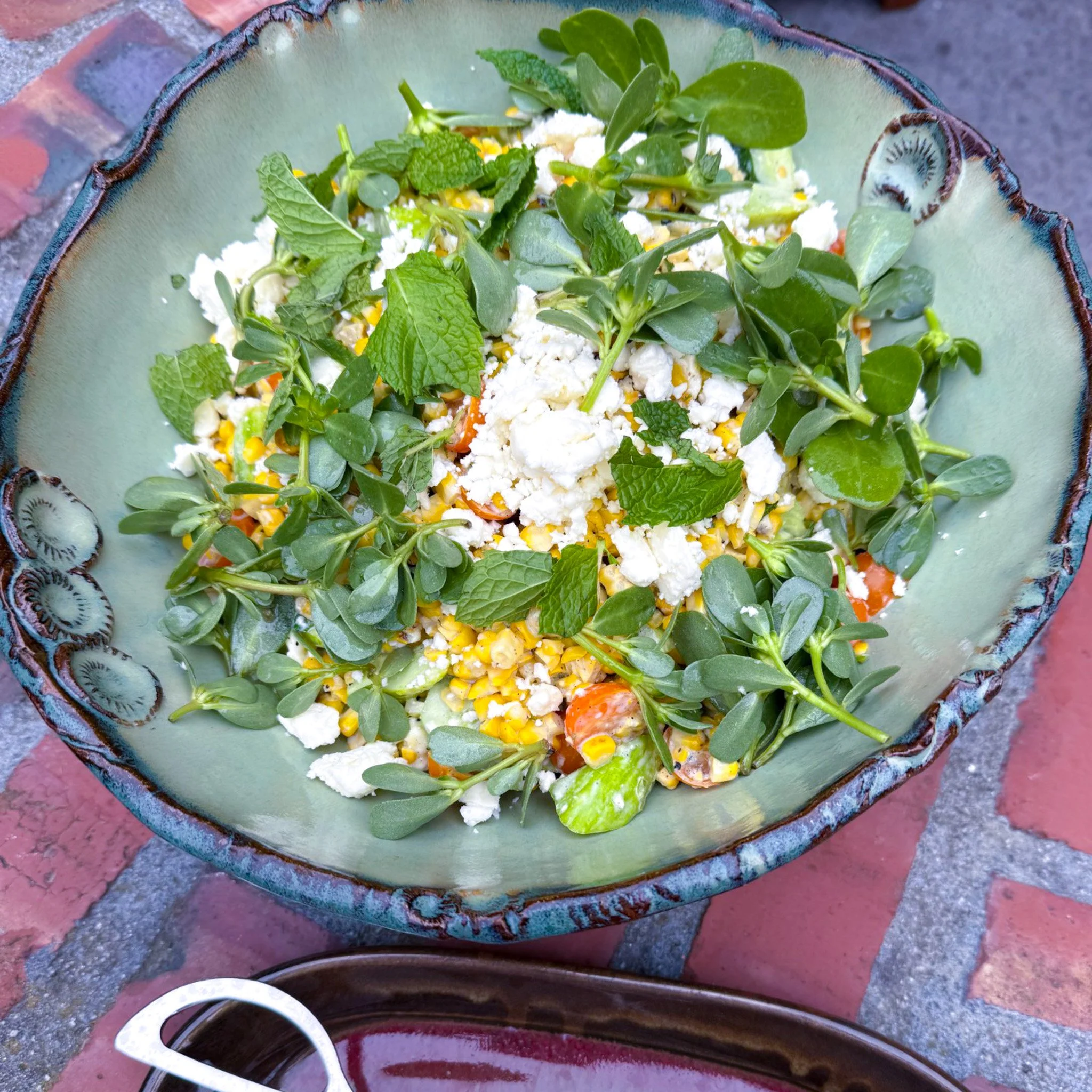 Not usually a feta fan… but the use of feta here was so understated and perfectly used to compliment the mint and purslane. That plus the tomatoes, cucumber and corn? My kind of salad.