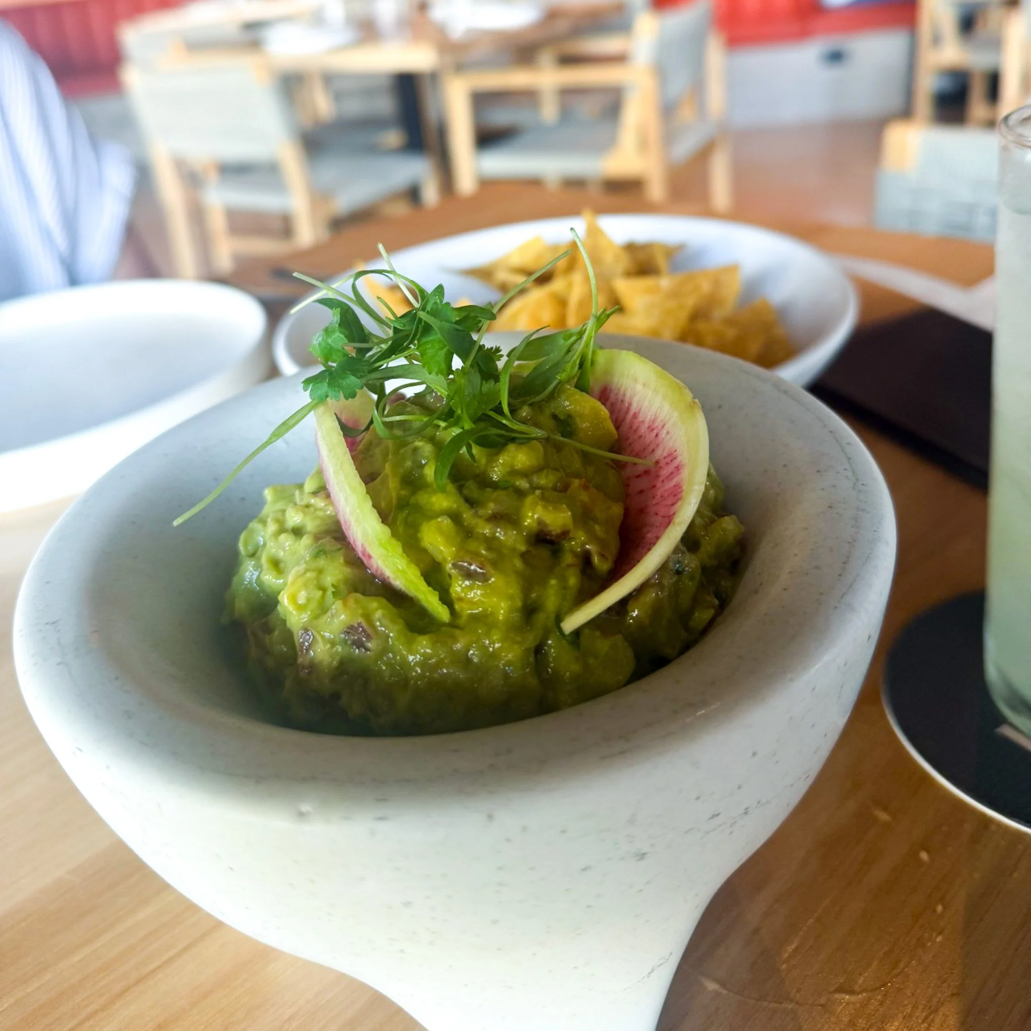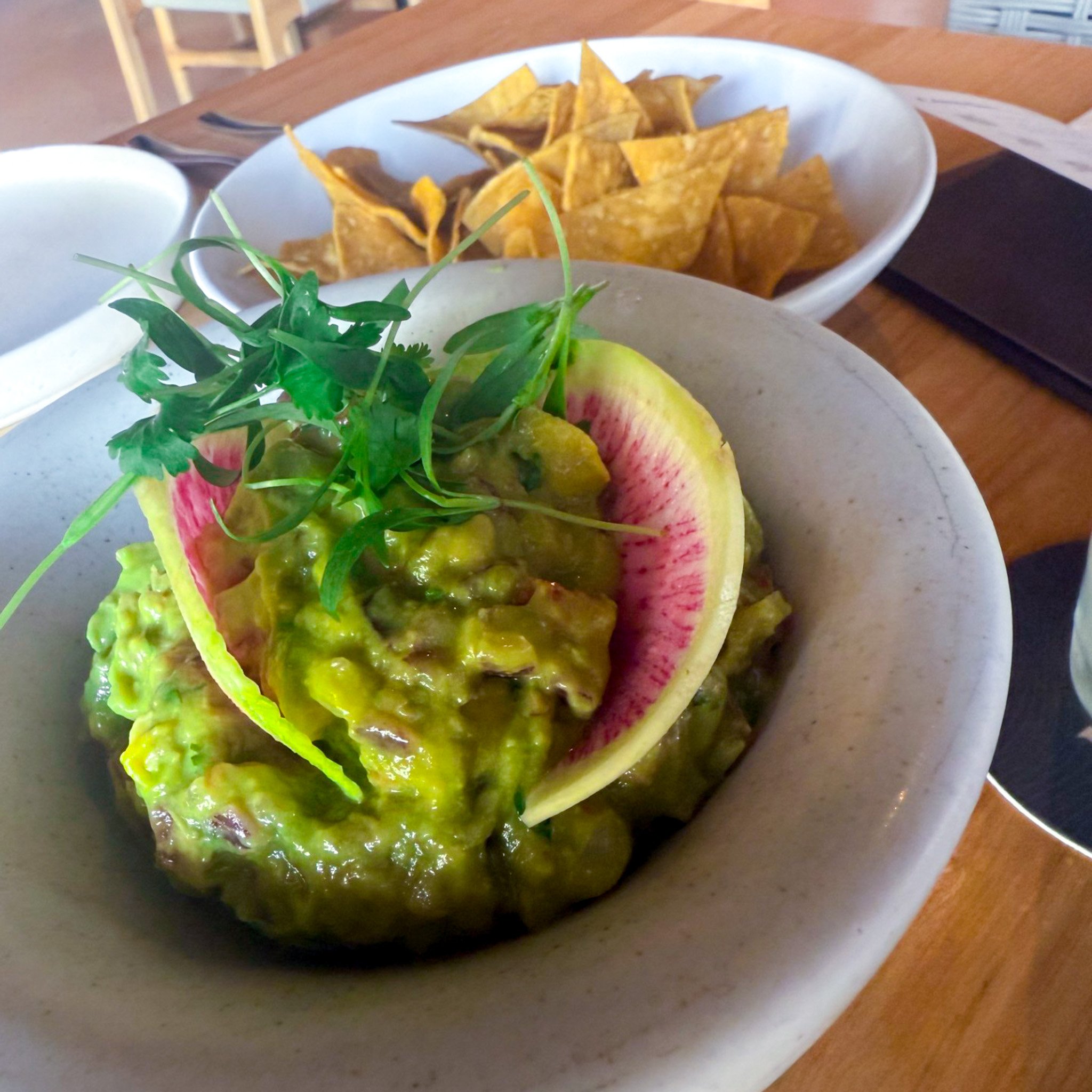 guacamole: haas avocados, tomato, cilantro, onion, lime serrano, tortilla chips