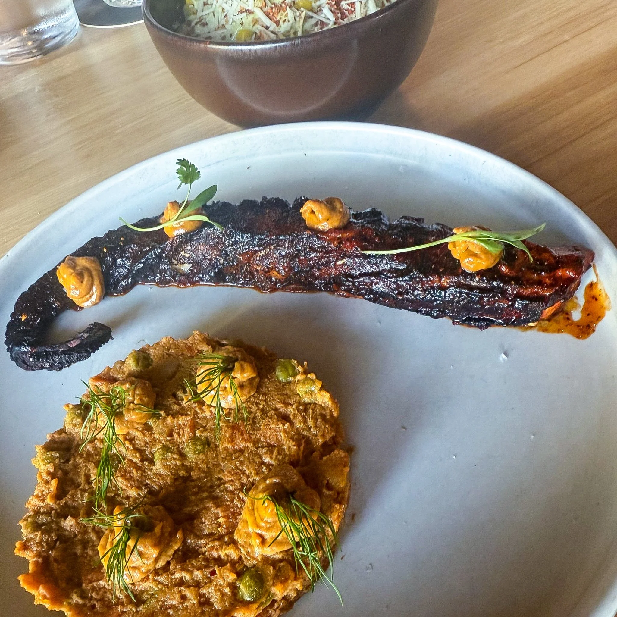 Esquites was the perfect side to round out our meal. I really liked the use of non traditional (or what we would consider traditional) ingredients to represent for some of the more usual esquites flavors. Using tea leaves instead of cilantro with a garlic aioli and queso cincho instead of cotija. All the taste you are used to with an elevated punch.